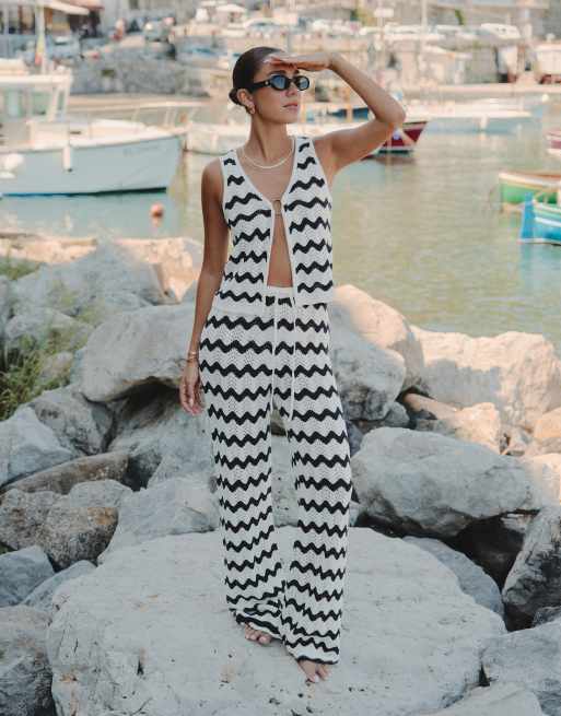 4th & Reckless x Luana Barron - Ana - Golvende gehaakte strandbroek in marineblauw en crème, deel van co-ord set