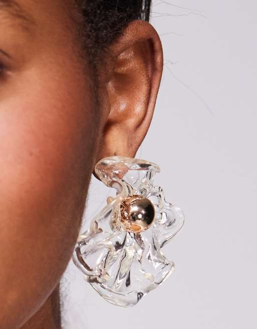 8 Other Reasons - Statement oorknopjes met bloemen in transparant en 18k verguld