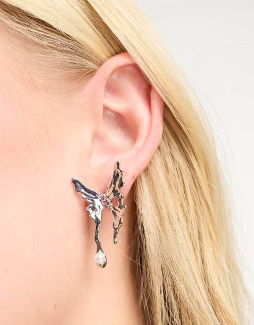 8 Other Reasons - Vlindervormige oorbellen met gesmolten look in zilver
