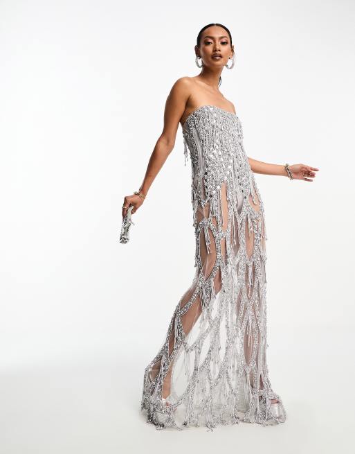 A Star Is Born - Doorschijnende maxi jurk met versiering en ingebouwde body in zilver