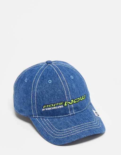 Aape by A Bathing Ape - Now - Baseballpet in denim blauw met groen logoborduursel