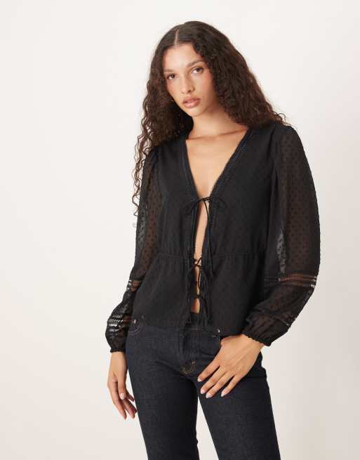 Abercrombie & Fitch - Blouse met lange mouwen en gestrikte voorkant in zwart