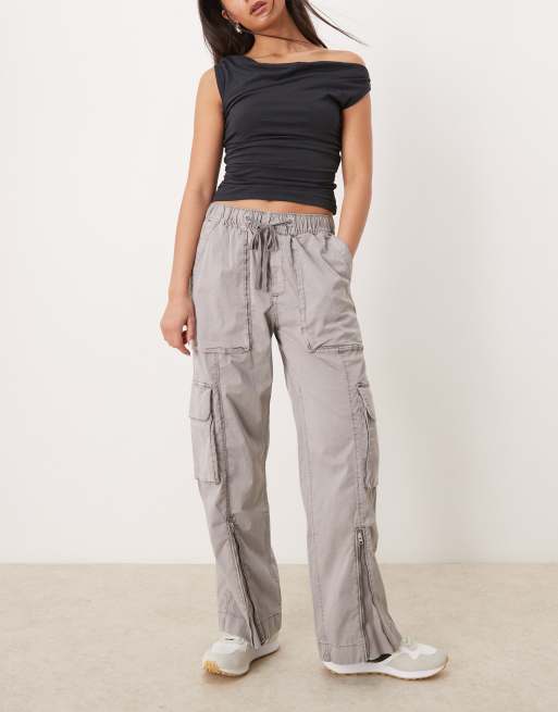 Abercrombie & Fitch - Cargobroek met wijde pijpen en hoge taille in grijs