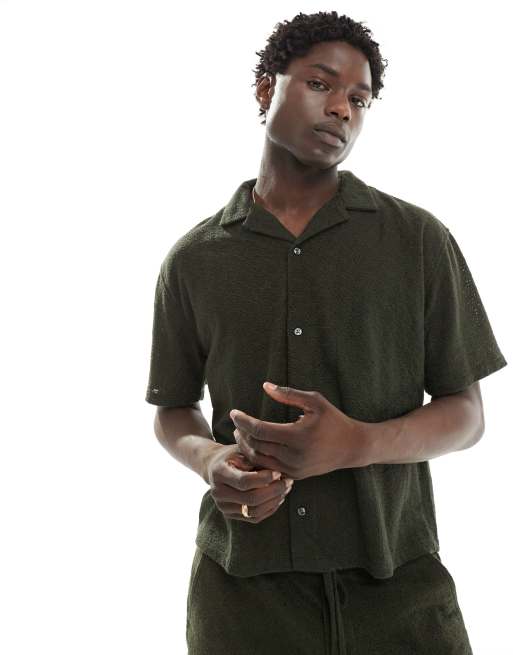 Abercrombie & Fitch - Cropped oversized overhemd van fijn kant met korte mouwen in olijfgroen, deel van co-ord set