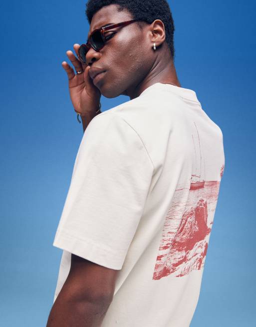 Abercrombie & Fitch - Cropped T-shirt met bestemmingsprint op de achterkant in beige