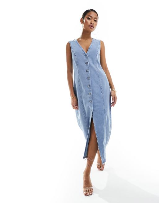 Abercrombie & Fitch - Denim midi-jurk met knoopsluiting in blauw