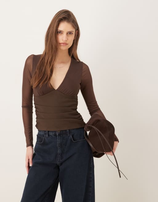 Abercrombie & Fitch - Diepuitgesneden top in bruin
