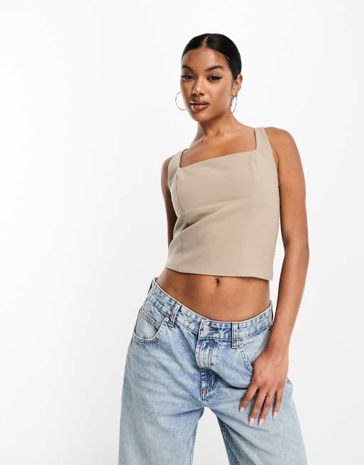 Abercrombie & Fitch - Elegante top met brede bandjes en vierkante hals in grijs/bruin