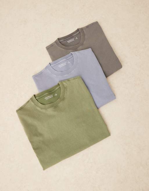 Abercrombie & Fitch - Essentials - Set van 3 T-shirts in blauw multi