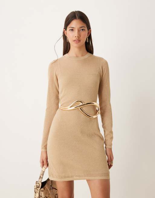 Abercrombie & Fitch - Gebreide mini jurk in goud metallic