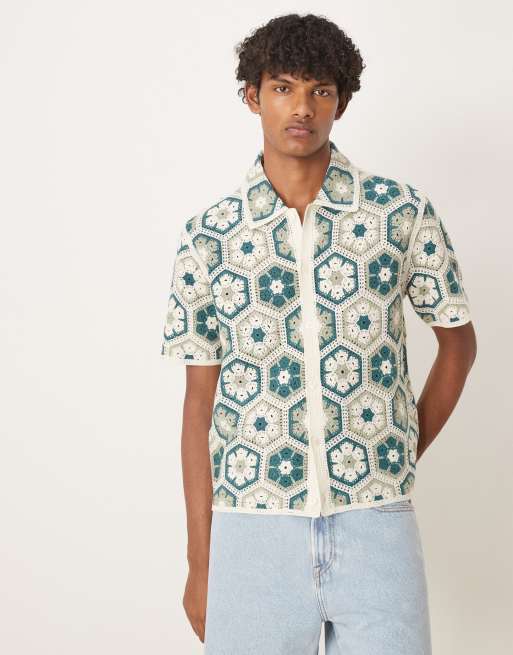 Abercrombie & Fitch - Gebreide polo met korte mouwen en citrusprint in groen