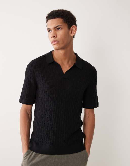 Abercrombie & Fitch - Gebreide polo met korte mouwen in zwart