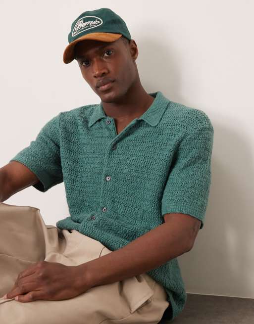 Abercrombie & Fitch - Gehaakte polo met korte mouwen en knoopsluiting in donkergroen