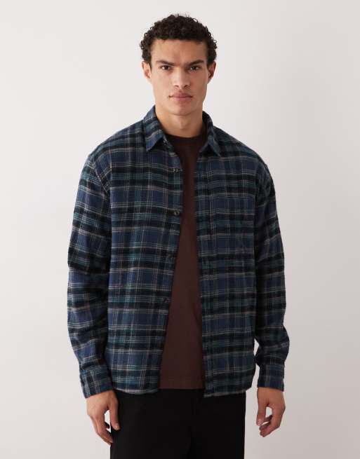 Abercrombie & Fitch - Geruit flanellen overhemd met lange mouwen in marineblauw