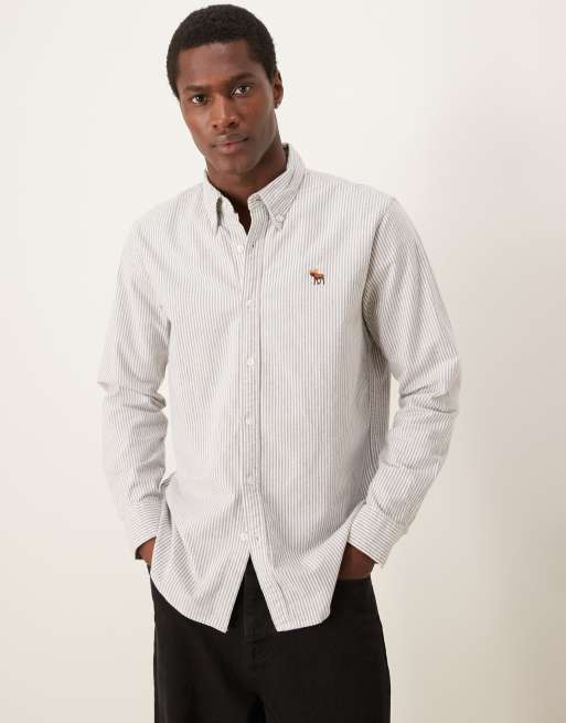 Abercrombie & Fitch - Gestreept Oxford overhemd met logo in grijs