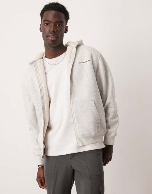 Abercrombie & Fitch - Hoodie met logo, sherpavoering en rits in gemêleerd grijs