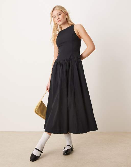 Abercrombie & Fitch - Hoogsluitende midi-jurk met verlaagde taille in zwart