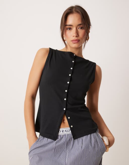 Abercrombie & Fitch - Hoogsluitende tanktop met knoopjes in zwart