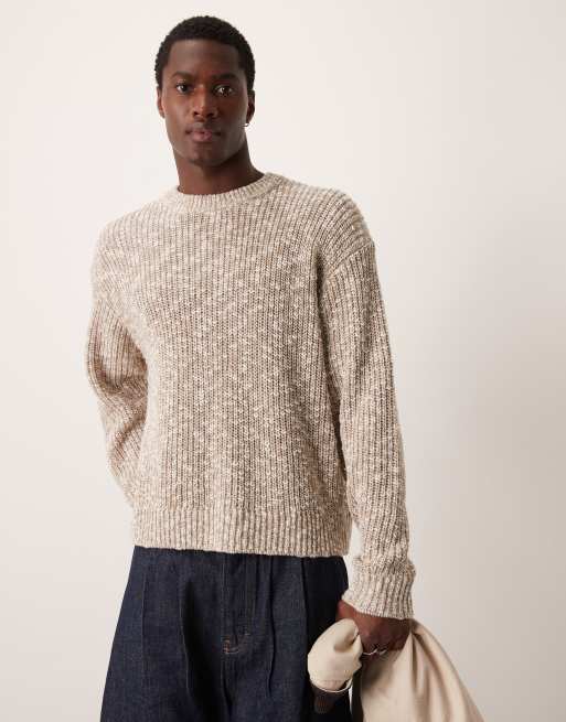 Abercrombie & Fitch - Oversized gebreide trui met ronde hals en gestreepte stiksels in crème