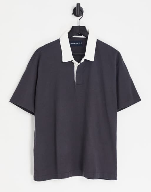 Abercrombie & Fitch - Oversized rugbyshirt met korte mouwen in zwart