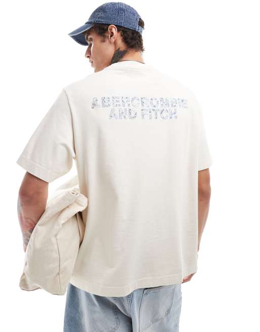Abercrombie & Fitch - Oversized T-shirt met logo met patroon erin op de achterkant in crème