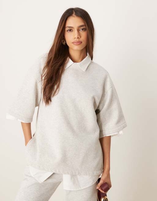 Abercrombie & Fitch - Oversized T-shirt met zijsplitten in lichtgrijs