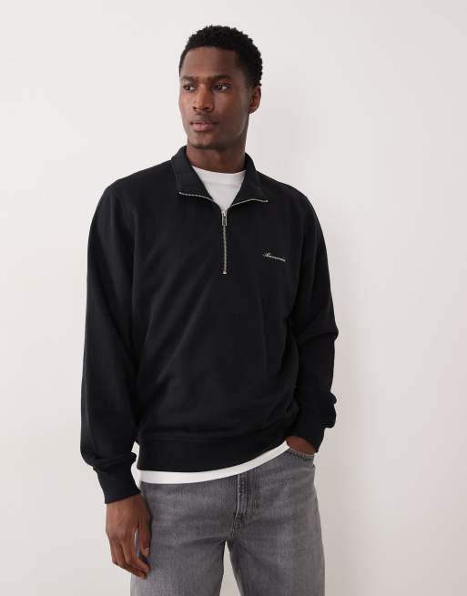 Abercrombie & Fitch - Premium sweatshirt met geschreven logo en kwartrits in zwart