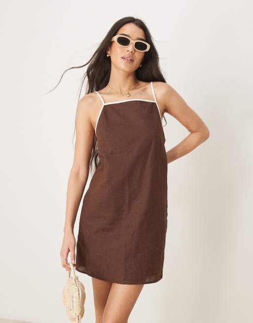 Abercrombie & Fitch - Rechtvallende mini jurk met vierkante hals in bruin
