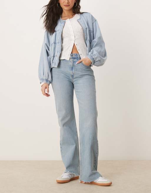Abercrombie & Fitch - Ruimvallende jeans met hoge taille en jaren 90-pasvorm in distressed wassing