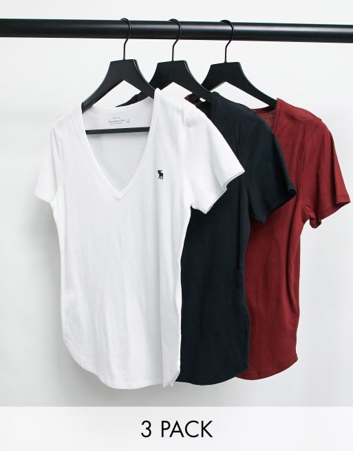 Abercrombie & Fitch - Set van 3 T-shirts met korte mouwen, en V-hals en icoontje in multi