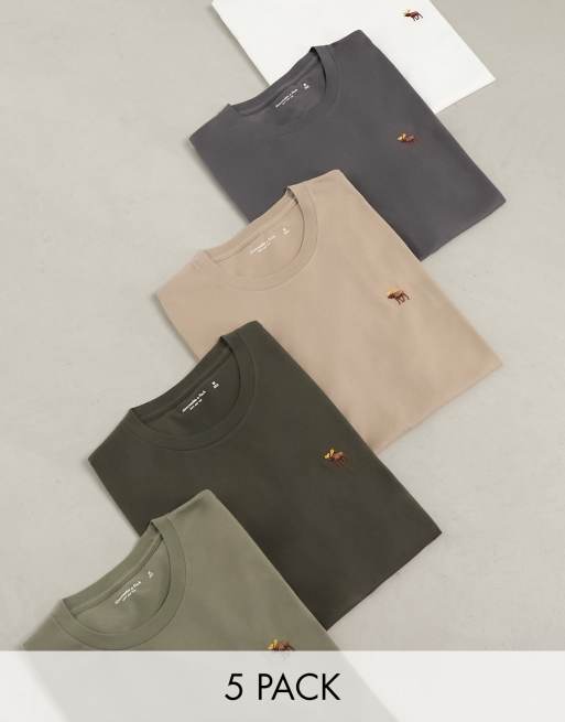 Abercrombie & Fitch - Set van 5 ruimvallende T-shirts met icoonlogo in neutrale tinten