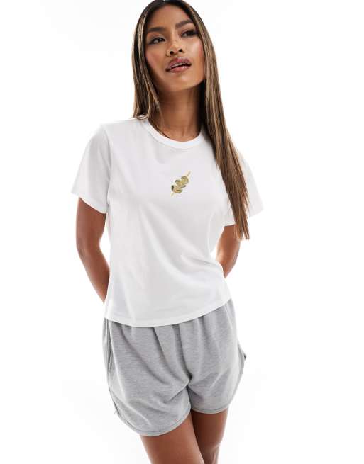 Abercrombie & Fitch - Slim-fit T-shirt met grafische olijfprint in wit