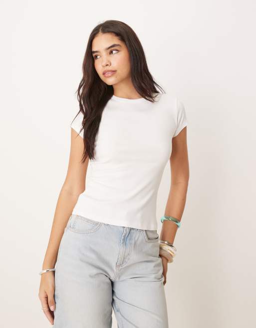 Abercrombie & Fitch - Smal geribbeld T-shirt in wit