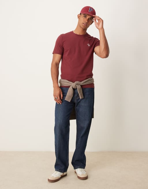 Abercrombie & Fitch - T-shirt met verhoogd icoonlogo in bordeauxrood