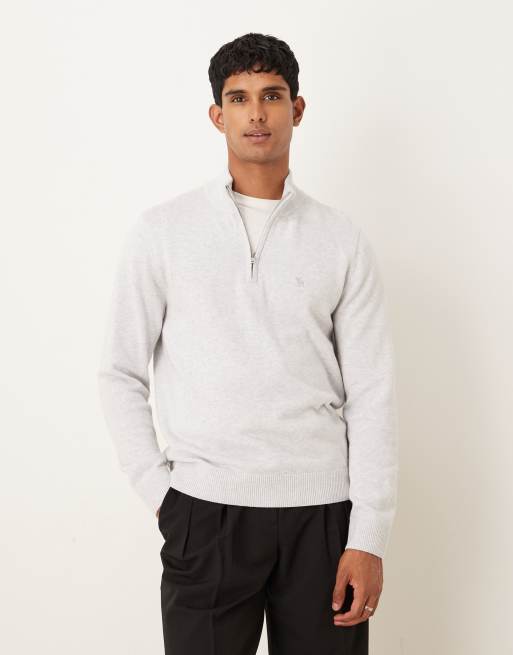 Abercrombie & Fitch - Trui met lange mouwen, kwartrits en logo op de borst in grijs