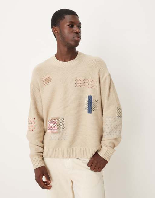 Abercrombie & Fitch - Trui met ronde hals en patches in crème