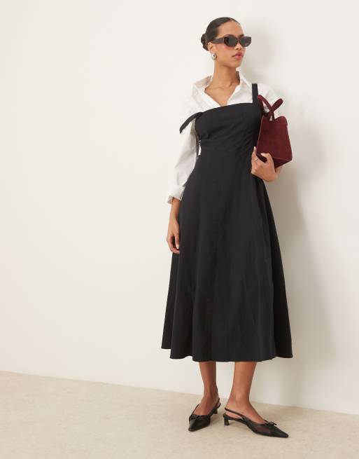 Abercrombie & Fitch - Uitlopende midi jurk met vierkante hals en panelen in zwart