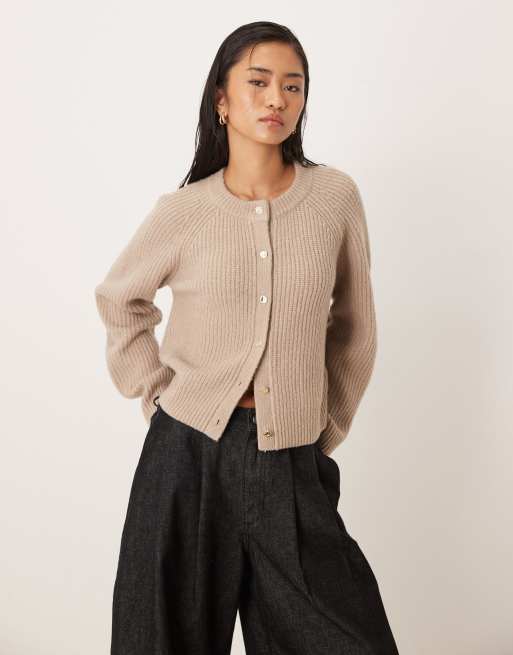 Abercrombie & Fitch - Vest met ronde hals en knoopsluiting in lichtbeige