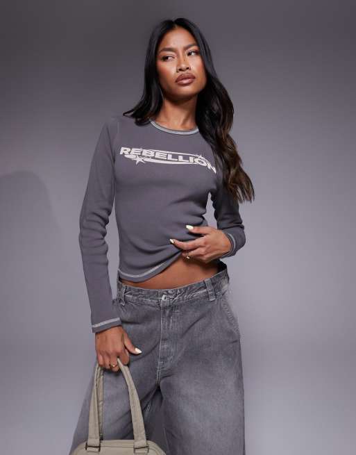 Abrand Jeans - T-shirt met lange mouwen en Rebellion-print in grijs