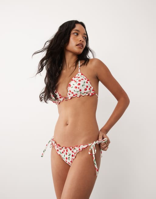 Accessorize - Bikinibroekje met kersenprint en contrasterende rand in wit