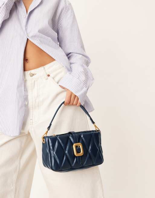 Accessorize - Breed doorgestikte crossbody tas met gesp in marineblauw