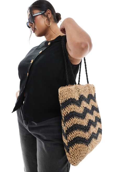 Accessorize - Gestreepte ruime shopper strandtas in zwart en naturel