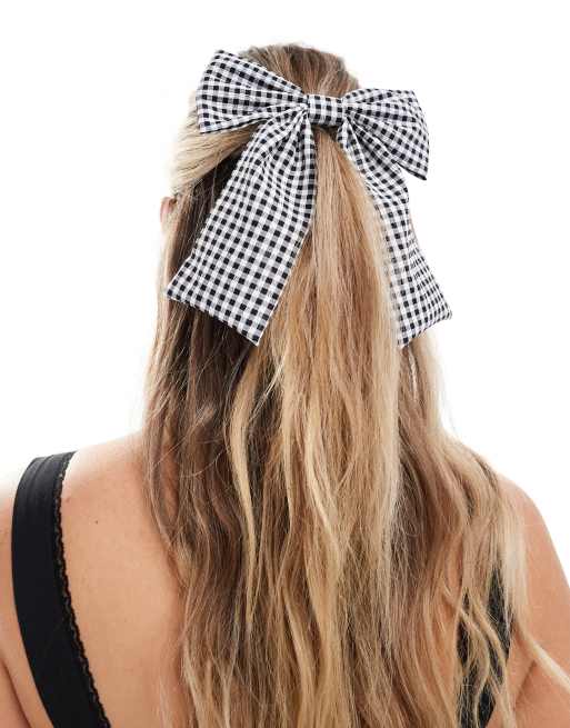 Accessorize - Haarspeld met strik en gingham ruit in zwart en wit