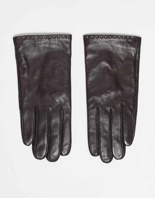 Accessorize - Leren handschoenen met studs in bruin