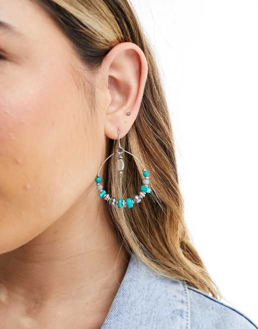 Accessorize - Oorbellen met hangende ringen met kralen in zilver/turquoise