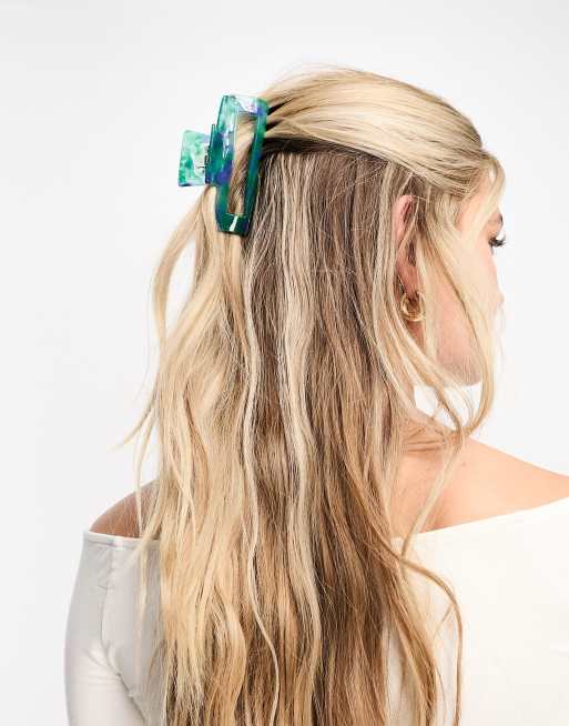 Accessorize - Rechthoekige haarklem in gemarmerd groen