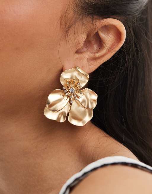 Accessorize - Statement oorknopjes met geborstelde bloem in goud