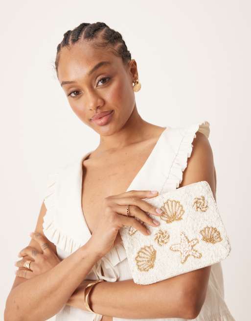 Accessorize - Tasje met schelpen in crème