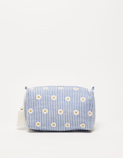 Accessorize - Toilettas in blauw met madeliefjes en strepen