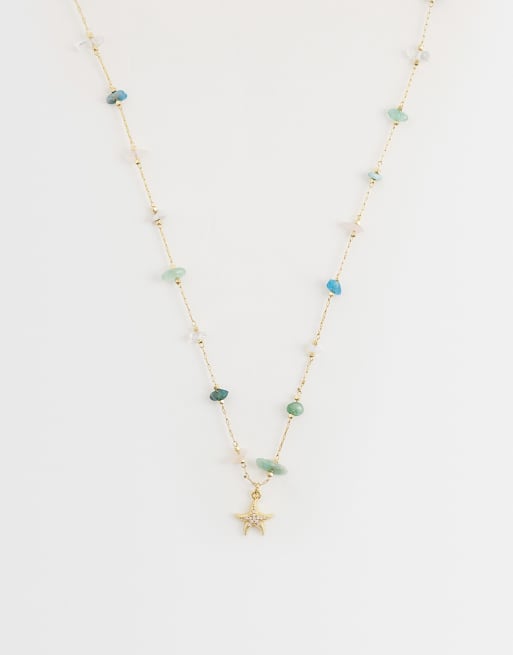 Accessorize - Z Collection - 14k vergulde ketting met roze en groene zeester